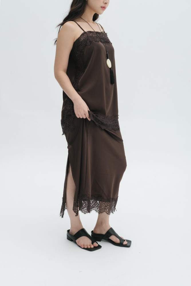 A statement lace set that delivers effortless elegance with a modern silhouette. Featuring a satin slip top with lace accents and a matching long skirt, this set flows beautifully with every movement. Perfect for intimate dinners, special occasions, or elevated everyday styling.