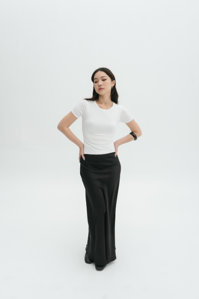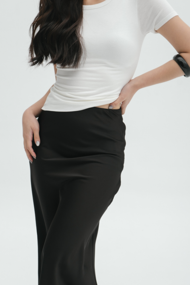 The quintessential silk maxi skirt every wardrobe needs. With its high-waisted fit and subtle flared hem, the Sikka Skirt offers a sleek, polished look that works for any occasion. Transition from a casual day at the office with a basic tee to a sophisticated night out by simply adding heels.