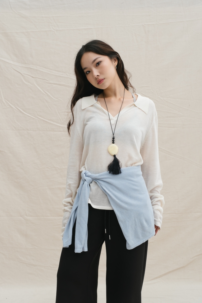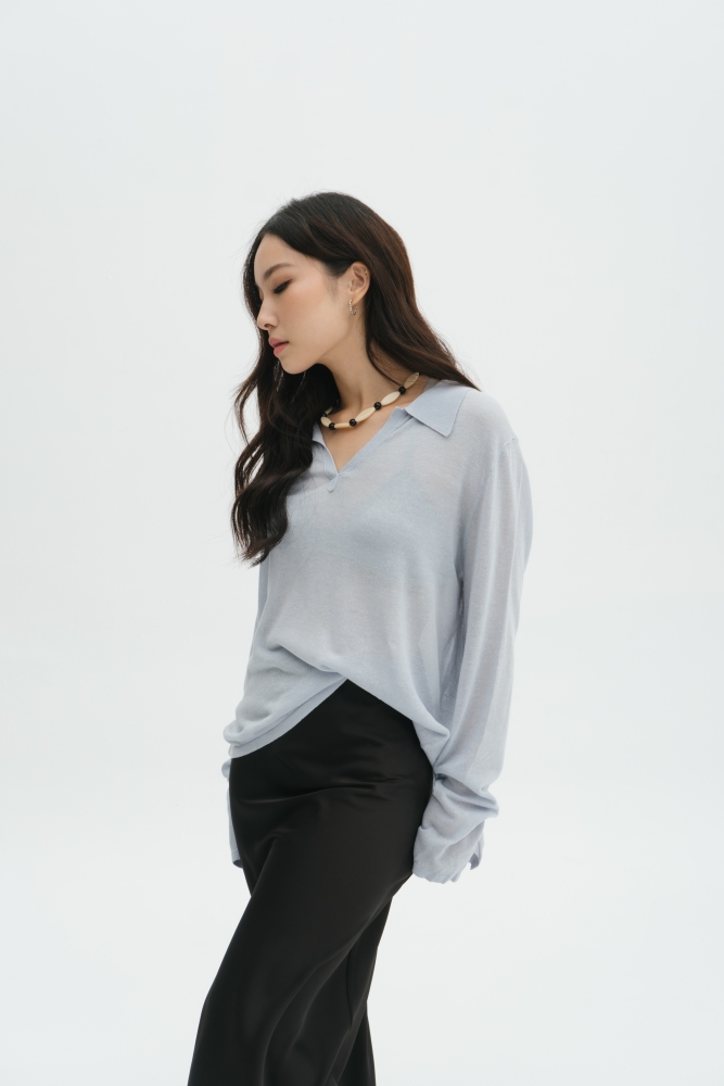 An effortlessly chic long sleeve top designed with a soft collar neckline and relaxed drape that flatters every silhouette. The lightweight fabric makes it perfect for all-day wear, whether styled casually with denim or dressed up with tailored pants. A timeless essential that instantly looks put-together with minimal effort.